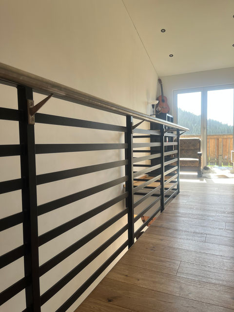 Innengeländer aus beispielsweise Glas und Metall